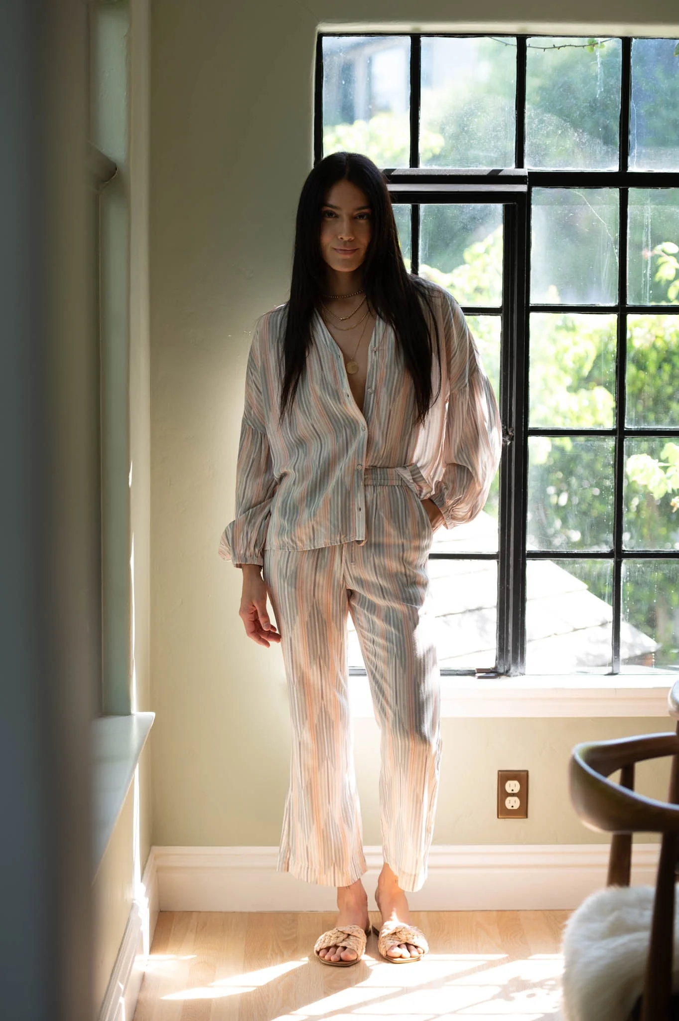 The Catherine top is a new style for us. It mixes cool modern elements with a vintage vibe with self buttons. The top was designed to fit your body with perfection.