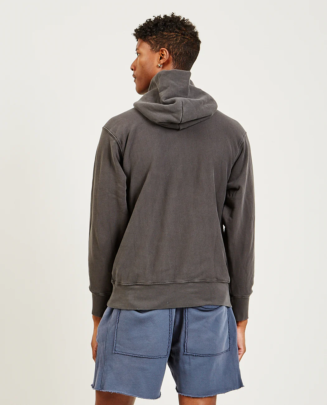 Cropped Hoodie in Vintage Black by Les Tien. A boxy and relaxed-fit pullover hoodie in an ultra-soft hand, just like a perfectly worn-in vintage hoodie.